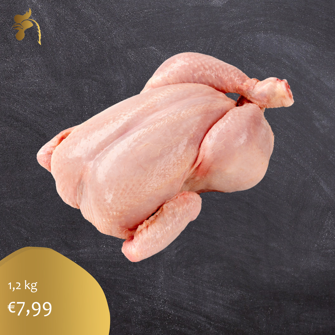 Heel kuiken van ca. 1200 gr. Onbewerkt, super vers (dus niet ingevroren!) en heerlijk van smaak! Vers is bij ons ook écht vers, het vlees dat je bij ons besteld wordt 1 of 2 dagen van tevoren geslacht.